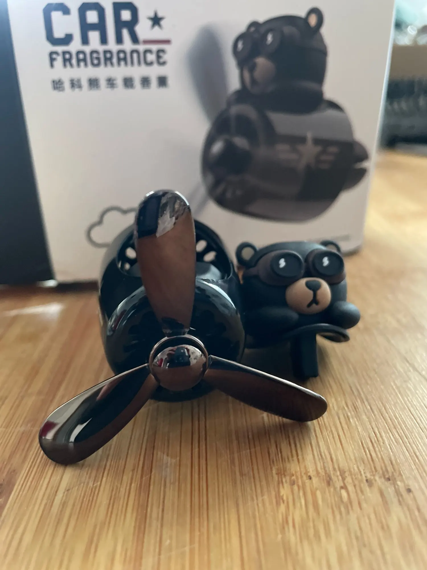 This unique air freshener combines a playful cartoon bear pilot design with a rotating propeller that spreads fragrance evenly throughout your car interior.